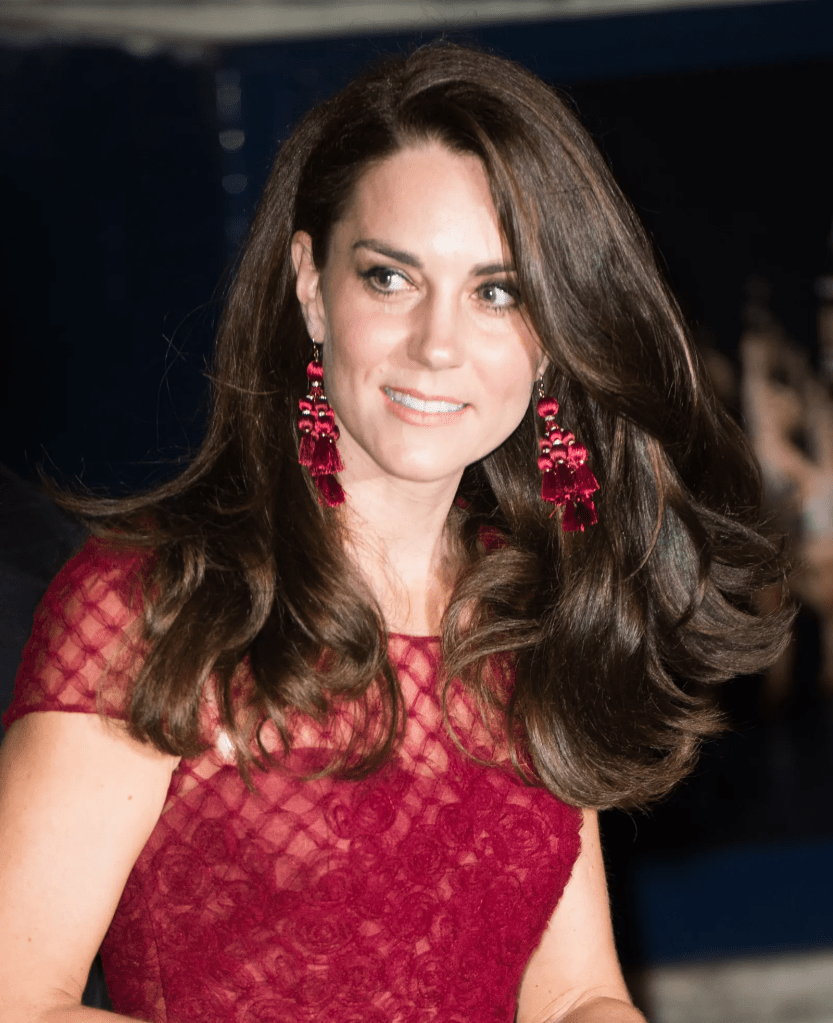 Kate’s signature style seamlessly blends high-end and budget-friendly items. For example, she wore £18 shoulder-grazing floral earrings from Zara with a white, floor-length, one-shouldered Alexander McQueen gown at the 2023 BAFTAs. In 2021, she paired £14 ASOS twisted golden hoops with an all-red outfit, including a Christopher Kane pleated skirt.